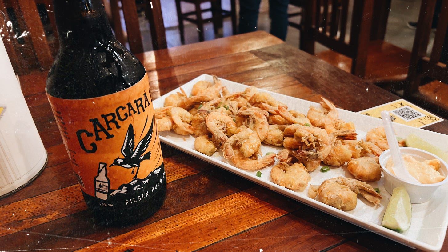 Comemos alí mesmo, bebemos mais cervejas deliciosamente geladas.