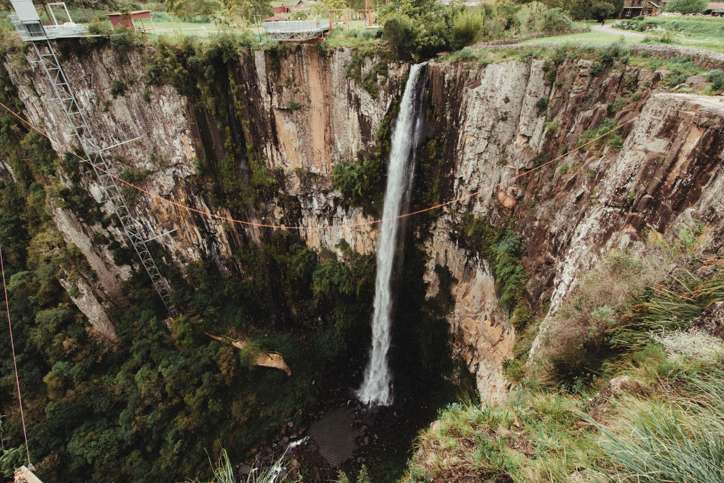 Minha próxima parada foi na cascata do avencal. Uma cachoeira que tem muitos metros de altura — to com preguiça de buscar a informação aqui — onde as pessas acham muito legal se jogar lá de cima com um cabo de aço.