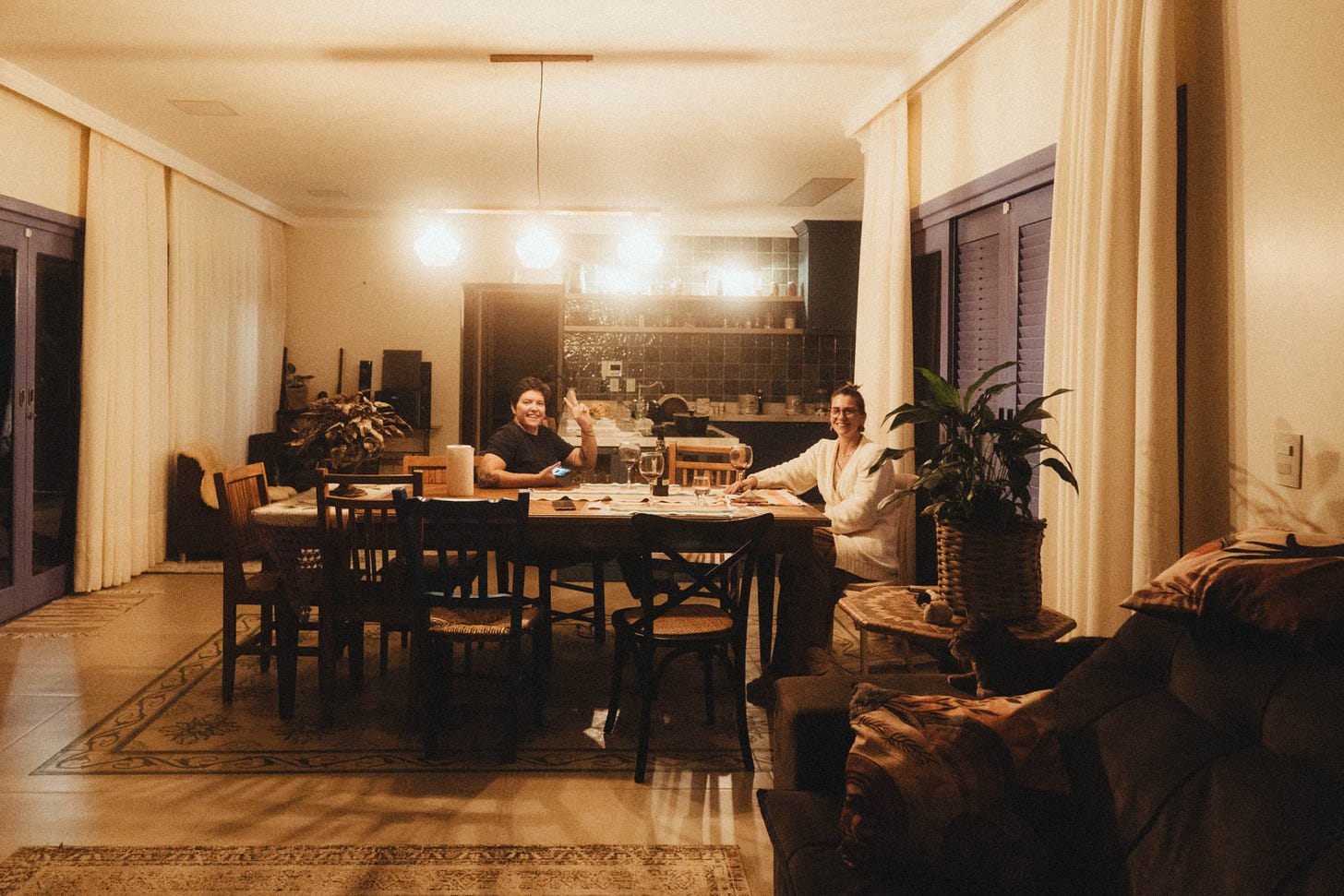 Quando cheguei, a Sabrine estava preparando uma janta muito gostosa enquanto a Tânia terminava de atender uma pessoa no trabalho dela.