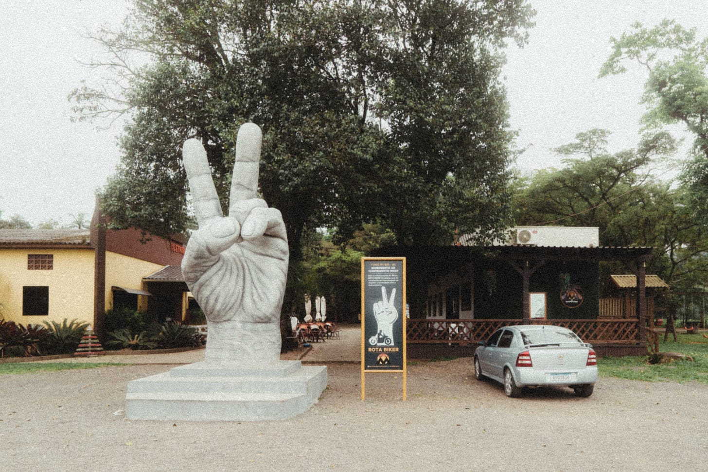Chegando no monumento biker, o restaurante estava fechado. Quando resolvi ir embora o dono apareceu e fez uma porção de tilápia para eu comer.