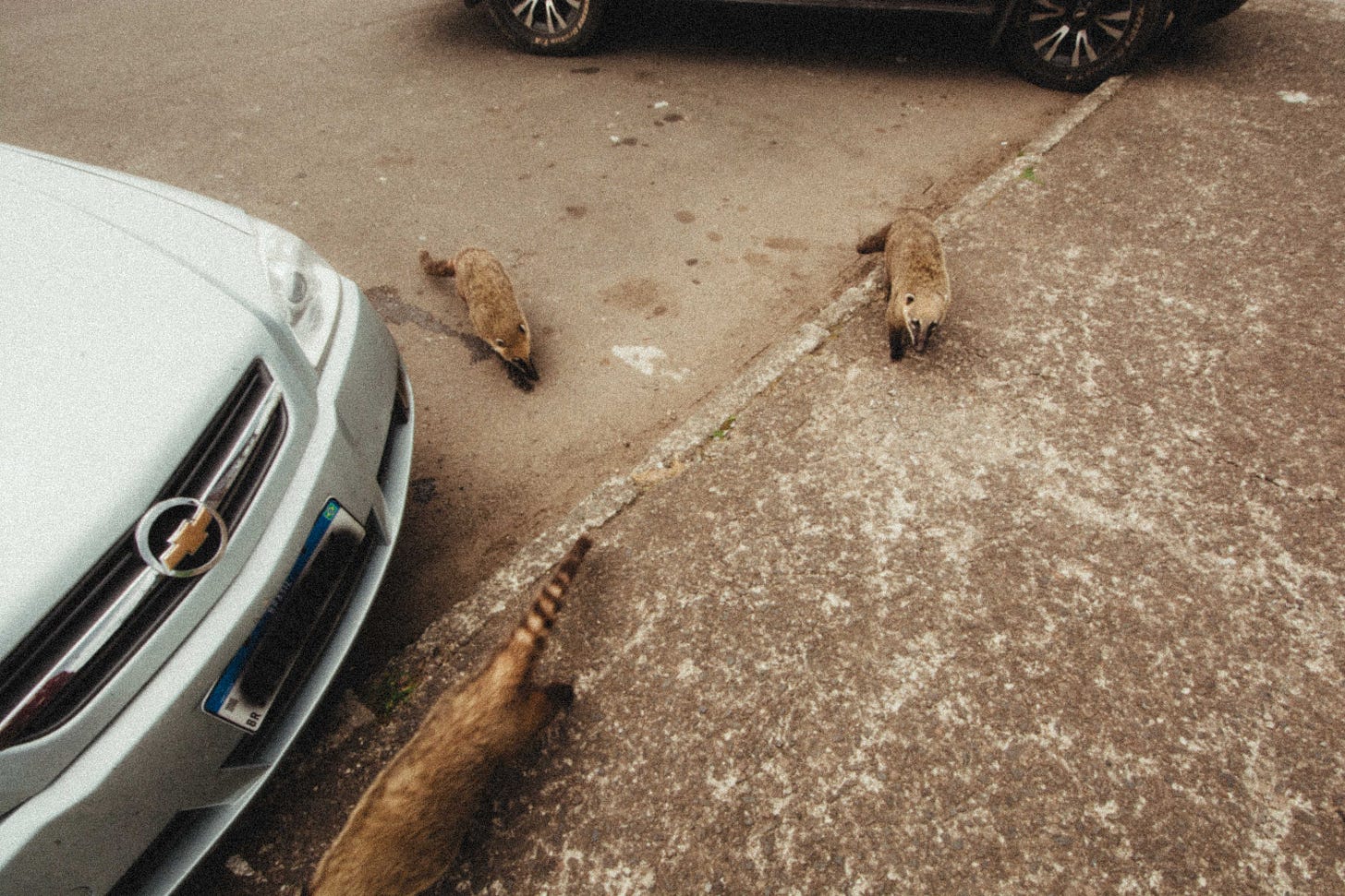 Quem gosta de dirigir entende o sentimento. Tirei umas fotos dos gigantes e dos guachinins. Voltei para o carro, liguei o motor dois ponto zero com filtro esportivo e escape furado, dei duas aceleradas e desci a serra no veneno, pipocando e fazendo drift em cada curva — na minha imaginação.
