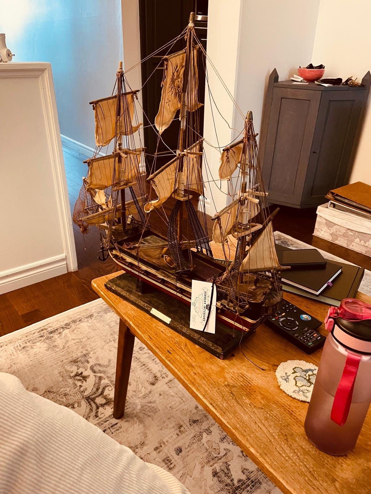 O barco que vi era pequeno, do tamanho de um tablet. Tinha alguns detalhes bonitos feitos a mão. Quando me dirigia ao caixa para pagar, a Jéssica gritou lá do porão: “PEEEDROOOO, VOCÊ VIU ESSE AQUI!?!?! ?!”
